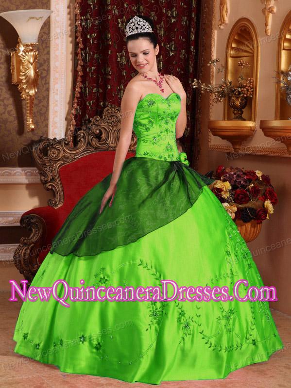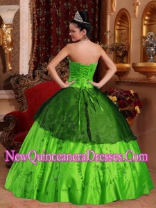 A Spring Green Sweetheart Satin Embroidery with Beading Simple Quinceanera Dresses