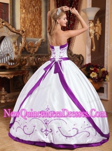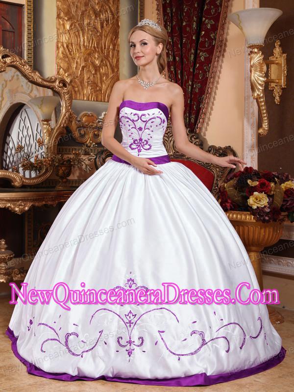 A White and Purple Embroidery Cheap Quinceanera Gowns