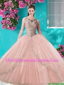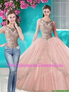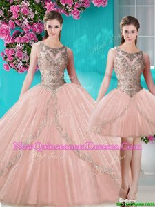 Admirable Three Piece Scoop Peach Lace Up Sweet 16 Dresses Beading and Appliques Sleeveless Floor Length