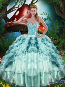 Sexy Sweetheart Neckline Beading and Ruffles Sweet 16 Dress Sleeveless Lace Up