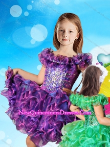 Affordable Scoop Cap Sleeves 2016 Little Girl Pageant Dress with Beading and Ruffles