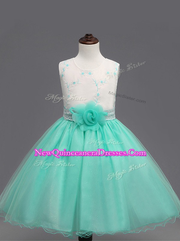 Apple Green Ball Gowns Appliques and Hand Made Flower Little Girl Pageant Gowns Zipper Organza Sleeveless Knee Length