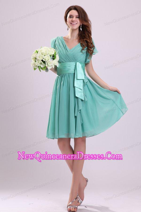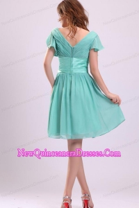 Apple Green V-neck Chiffon Dama Dresses with Short Sleeves