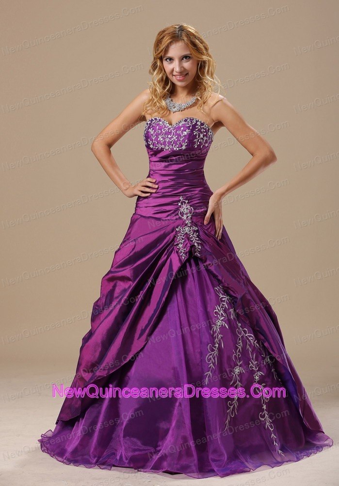Sweetheart Appliques Decorate Bust and Ruched Bodice For Dama Dresses for Quinceanera In Augusta Maine