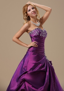 What an elegant dress! The dress features a modest sweetheart and strapless and tends to show off a well-toned body. This ball gown style dress is especially beautiful and graceful on tall, thin figures. This one features one shoulder strap and ruched bodice. The white applique is adorned with the pleating to outstand your perfect figure. The skirt falls to the floor in rippling wave appearance. You will be shining under the spotlight in this dress!