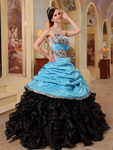 New Aqua Blue and Black Quinceanera Dress Sweetheart Ruffles Taffeta and Organza Ball Gown