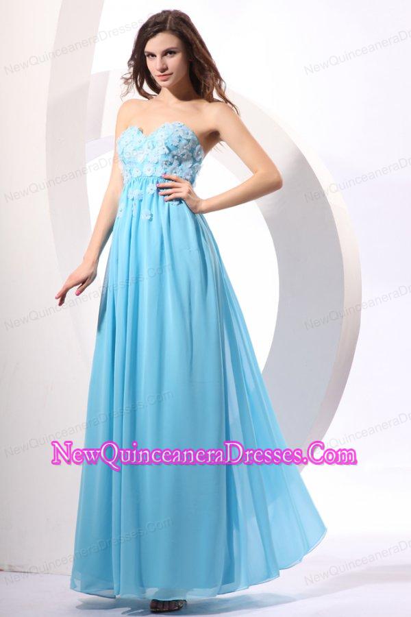 Aqua Blue Empire Sweetheart Floor-length Appliques Dresses for Dama for 2014