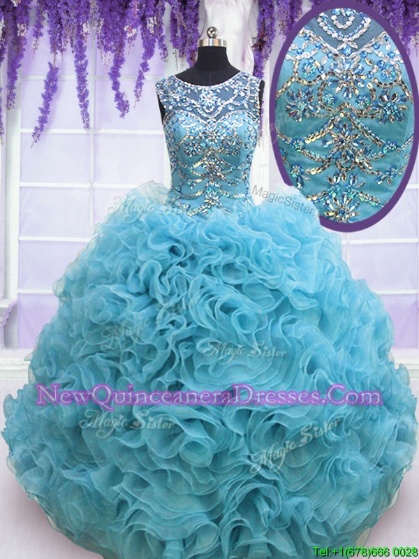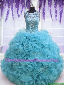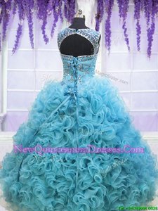 Admirable Aqua Blue Lace Up Sweet 16 Dresses Beading and Ruffles Sleeveless With Brush Train