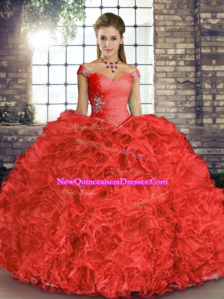 Artistic Beading and Ruffles 15 Quinceanera Dress Coral Red Lace Up Sleeveless Floor Length