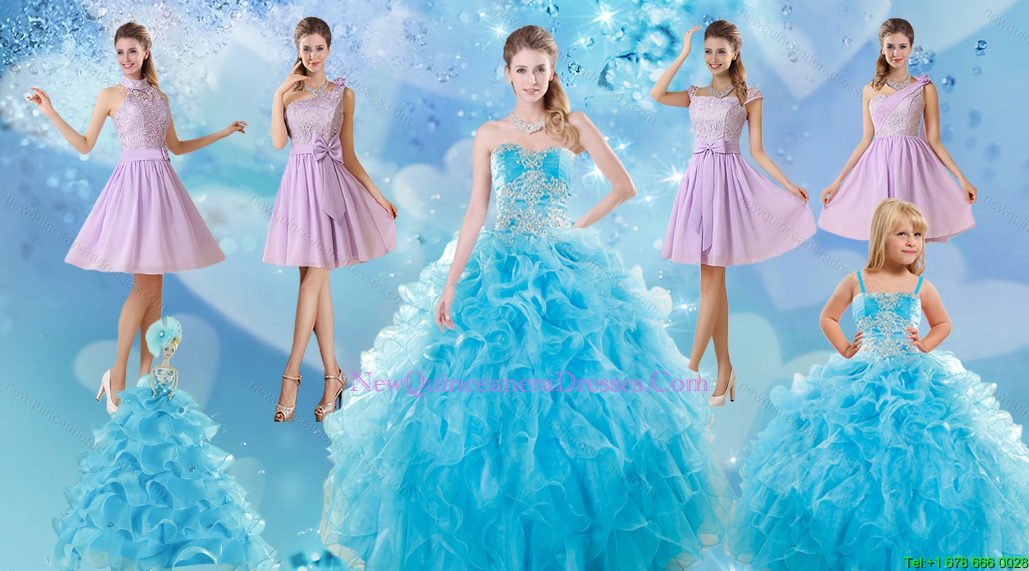 Baby Blue Ball Gown Ruffles Quinceanera Dress and Lilac Short Dama Dresses and Applique and Ruffles Little Girl Dress