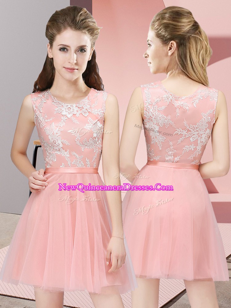 Baby Pink Sleeveless Tulle Side Zipper Vestidos de Damas for Prom and Party and Wedding Party