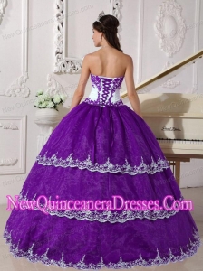 Ball Gown Fashionable Strapless Floor-length Organza Appliques Quinceanera Dress in Purple and White