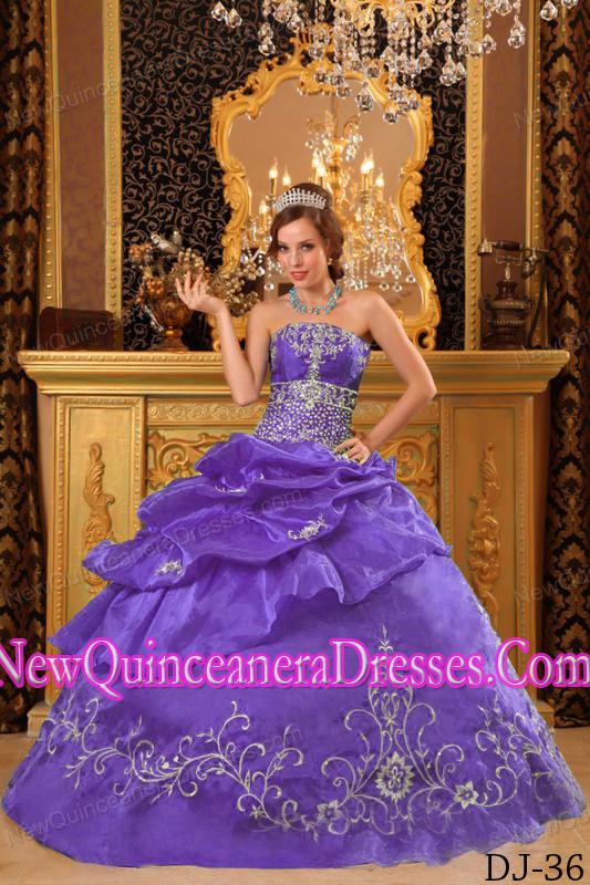 Ball Gown Strapless Organza Beading Pretty Sweet 15 Dresses in Lavender