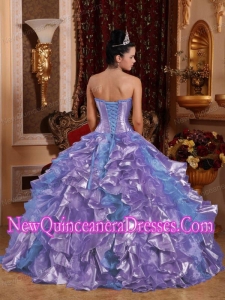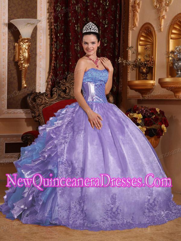 Ball Gown Strapless Ruffles Organza Embroidery Lavender Puffy Sweet 16 Gowns