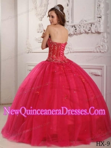 Ball Gown Strapless Tulle Beading Hot Pink Custom Made Quinceanera Dresses