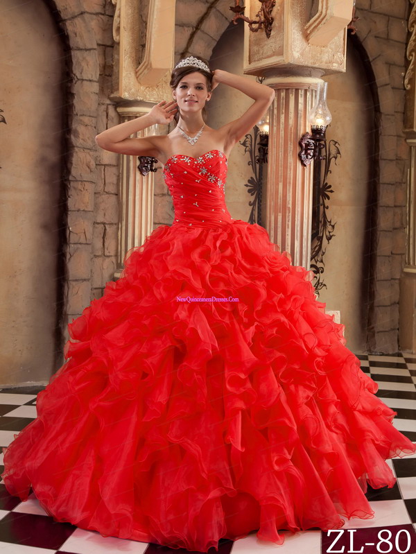 Ball Gown Sweetheart Floor-length Ruffles Organza Beautiful Quinceanera Dress