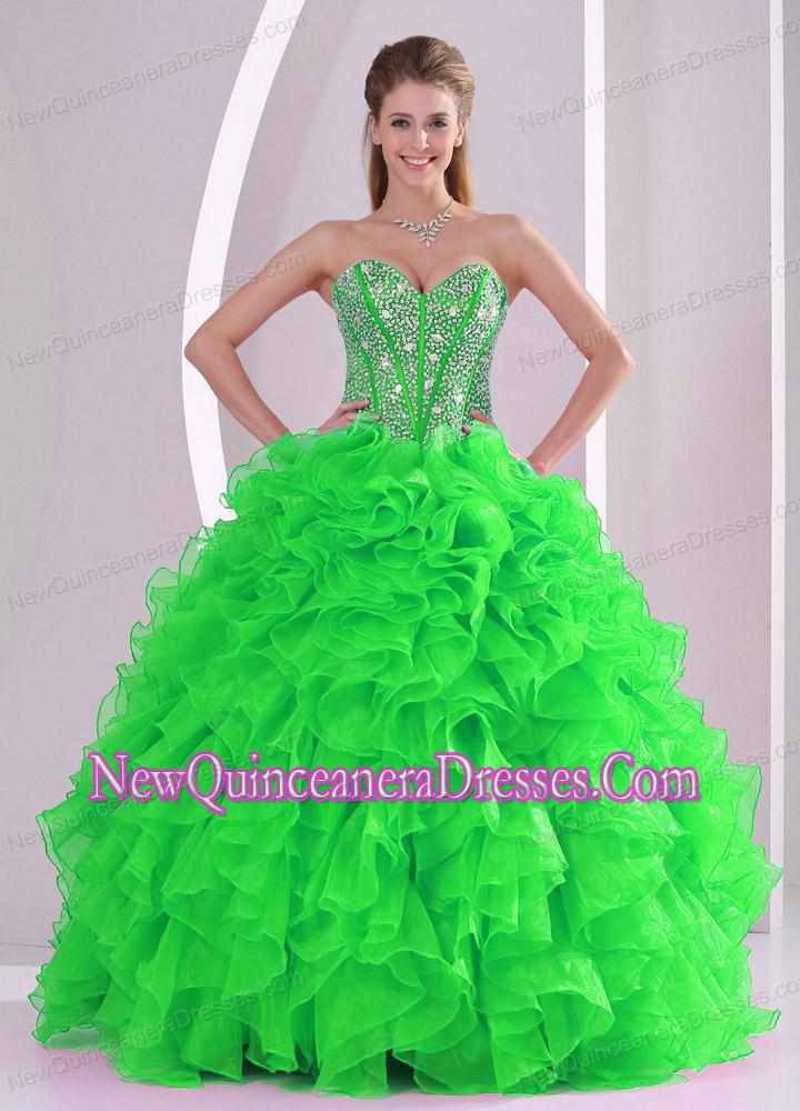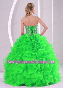 Ball Gown Sweetheart Ruffles and Beading Organza 2013 Quinceanera Dress in Sweet 16