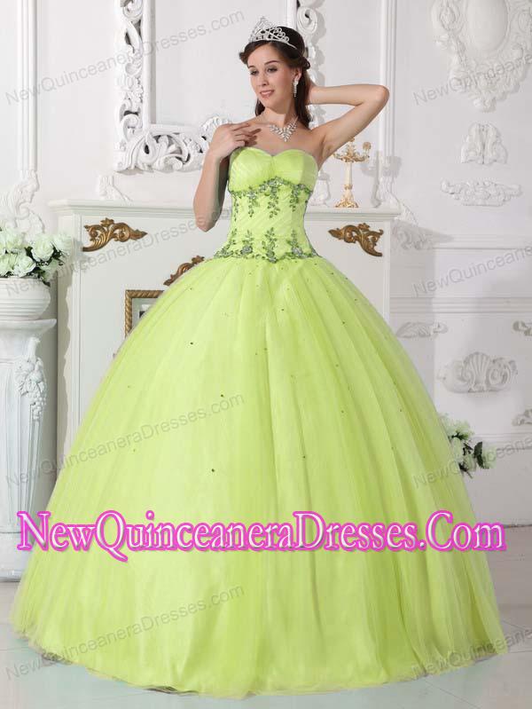 Yellow Green Ball Gown Strapless Floor-length Organza Appliques Quinceanera Dress