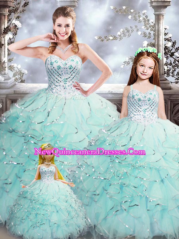Ball Gowns Ball Gown Prom Dress Aqua Blue Sweetheart Organza Sleeveless Floor Length Lace Up