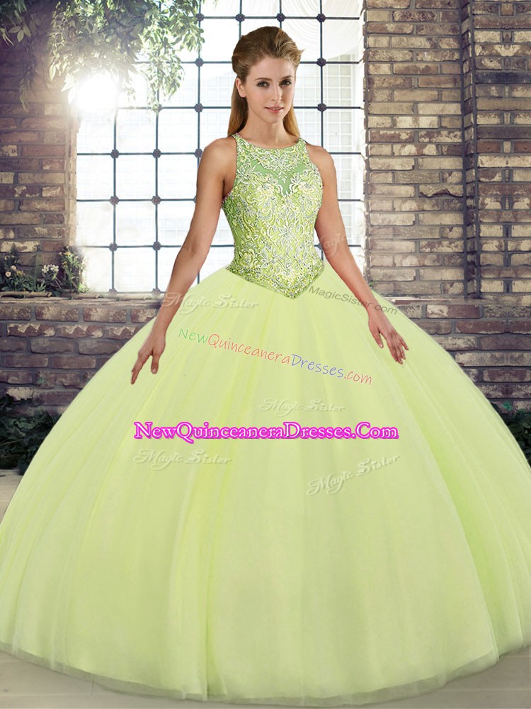 Ball Gowns Quinceanera Gown Yellow Green Scoop Tulle Sleeveless Floor Length Lace Up