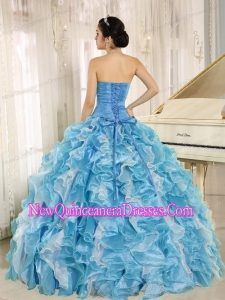 Wholesale Blue Sweetheart Ruffles Fashionable Quinceanera Dress With Zebra and Beading
