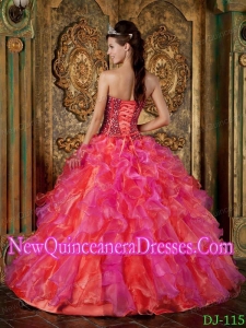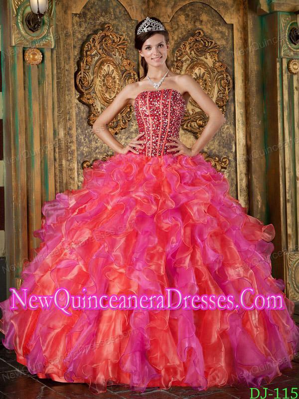 noble organza made sweet 16 dress, Beaded Multi-Color Ball Gown Strapless Floor-length Organza 2014 Quinceanera Dress with Ruffles
