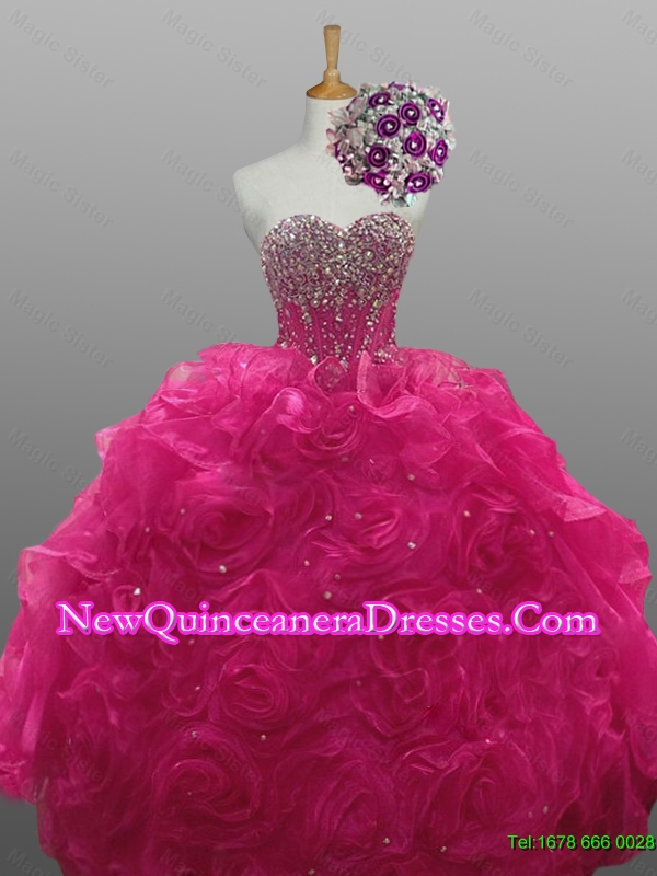 Beading and Rolling Flowers Sweetheart Quinceanera Dresses for 2015