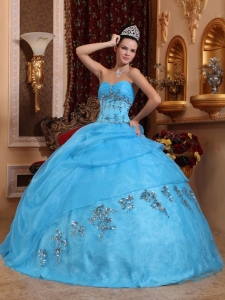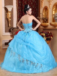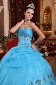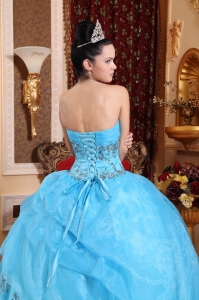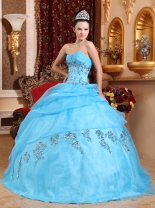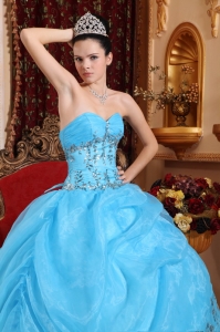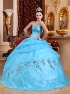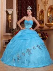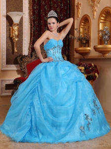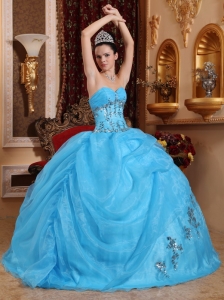 wholesale aqua blue quinceanera dress with beaded appliques,
