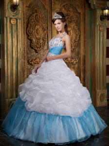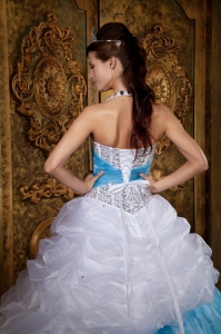 Lovely White and Baby Blue Quinceanera Dress Halter Beading A-line / Princess