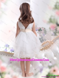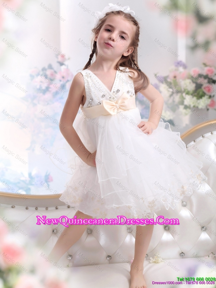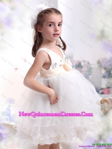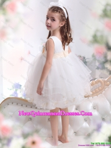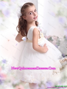 Beading Ruffled 2015 White little Girl Pageant Dresses with Bowknot