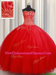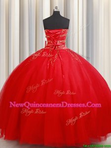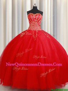 Beautiful Ball Gowns Vestidos de Quinceanera Red Sweetheart Tulle Sleeveless Floor Length Lace Up