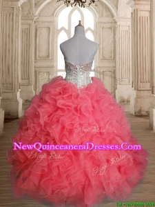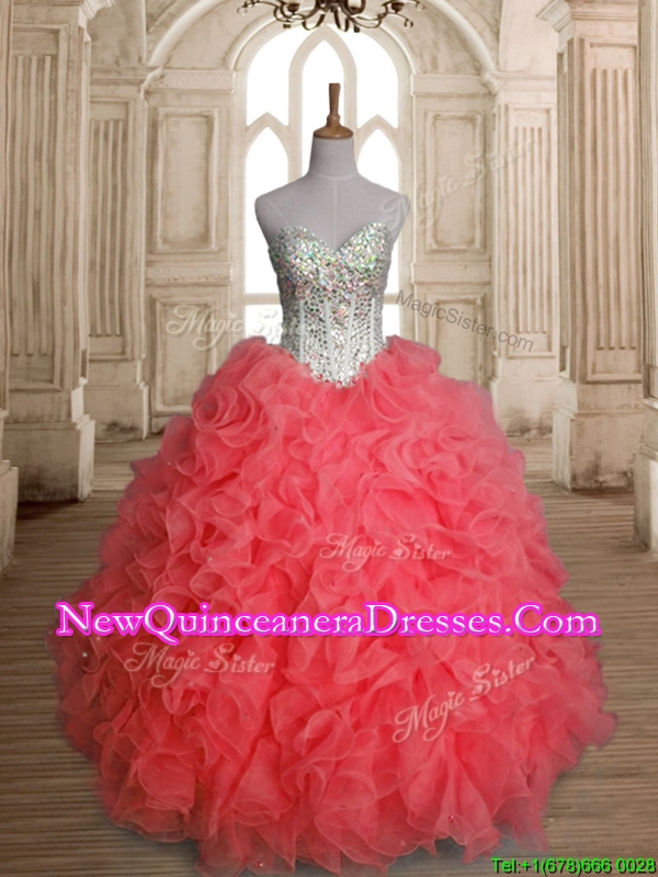 Beautiful Beaded Bodice and Ruffled Quinceanera Dress in Watermelon Red