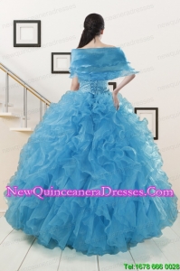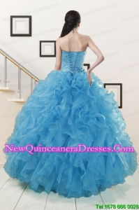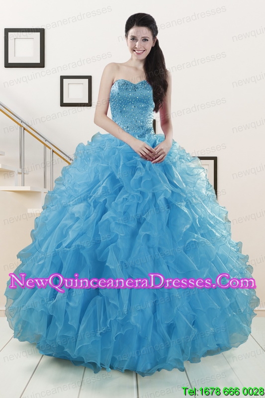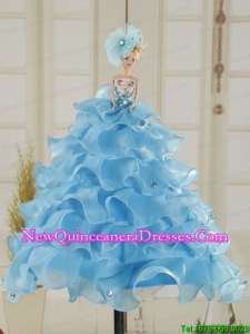 , Beautiful Beaded Quinceanera Dresses Ruffled in Blue