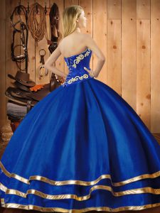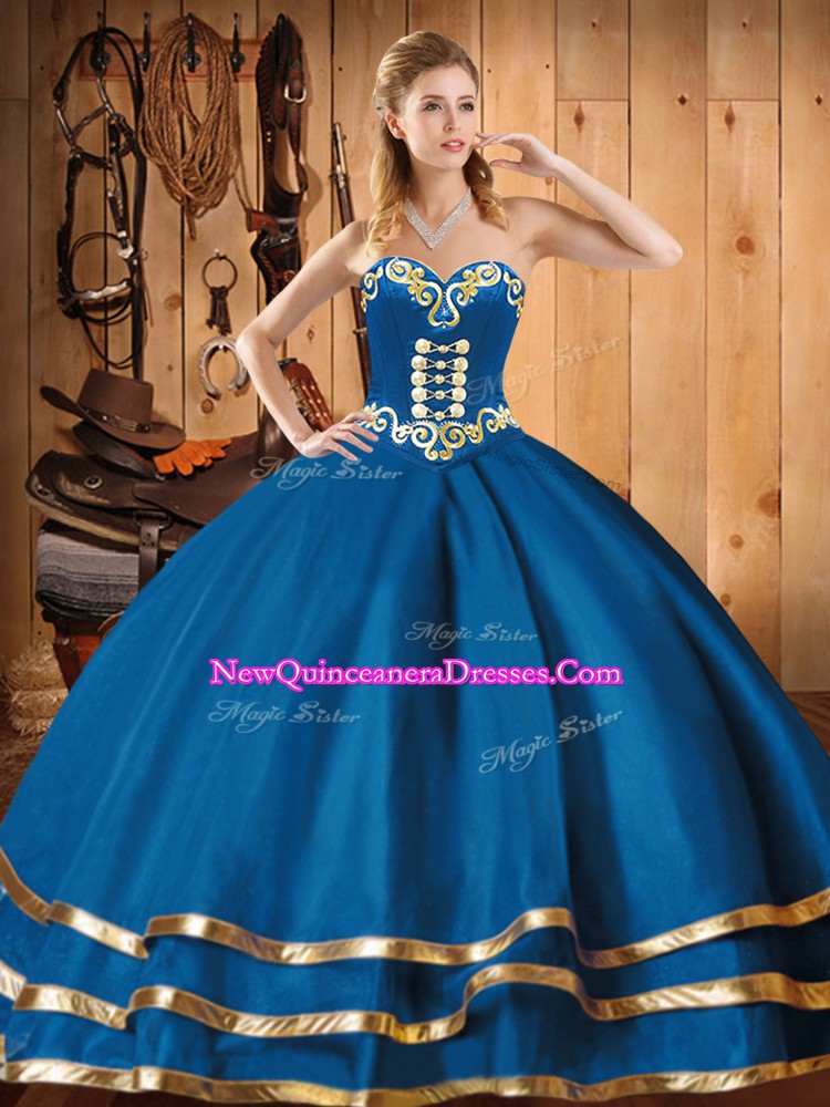 Beautiful Blue Lace Up Sweetheart Embroidery Ball Gown Prom Dress Organza Sleeveless