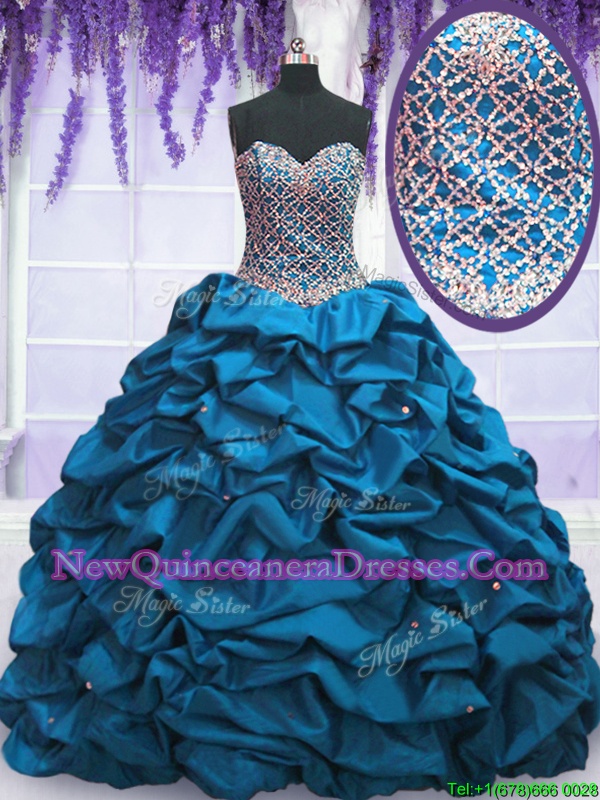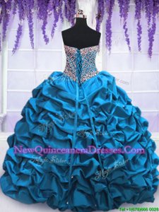 Beautiful Blue Sweet 16 Dress Military Ball and Sweet 16 and Quinceanera and For withBeading and Sequins and Pick Ups Sweetheart Sleeveless Lace Up