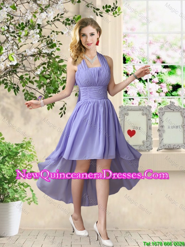 Beautiful Halter Top Ruched Damas Dresses with High Low