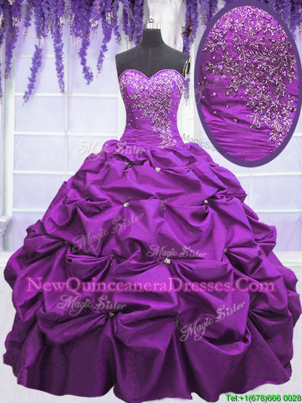 Beautiful Purple Sweetheart Neckline Appliques and Pick Ups Quinceanera Dresses Sleeveless Lace Up