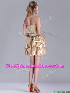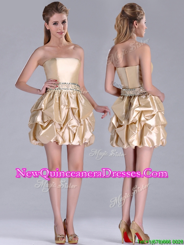 Beautiful Strapless Beaded and Bubble Short Dama Dress in Champagne