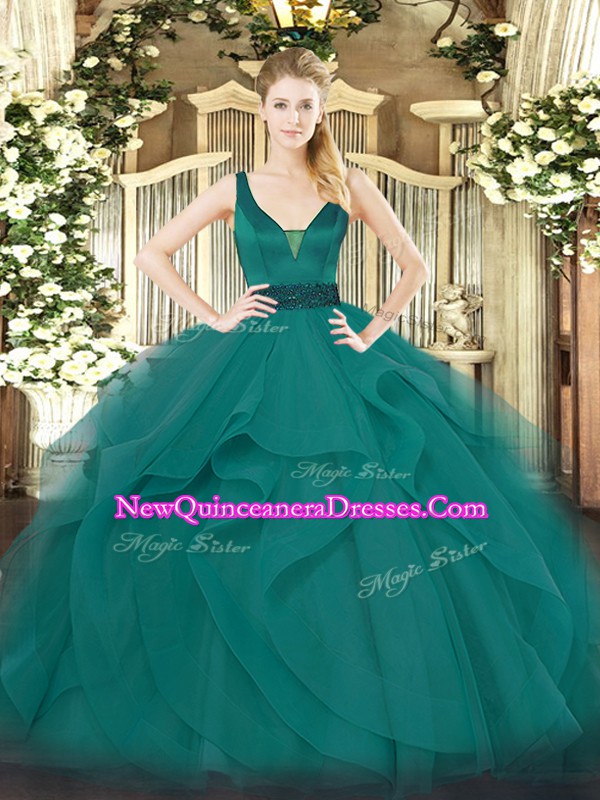 Beautiful Teal Ball Gowns Beading and Ruffles Vestidos de Quinceanera Zipper Tulle Sleeveless Floor Length