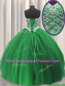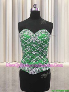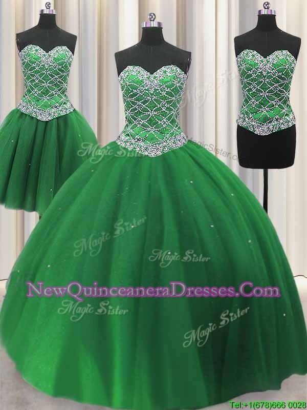 Beautiful Three Piece Floor Length Lace Up 15th Birthday Dress Green and In for Military Ball and Sweet 16 and Quinceanera withBeading and Sequins