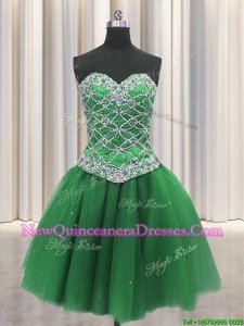 Designer Three Piece Spring Green Sweetheart Lace Up Beading Vestidos de Quinceanera Sleeveless