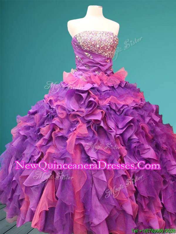 Best Beaded and Ruffled Quinceanera Dress in Purple and Pink