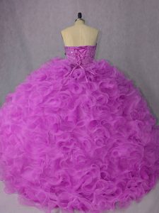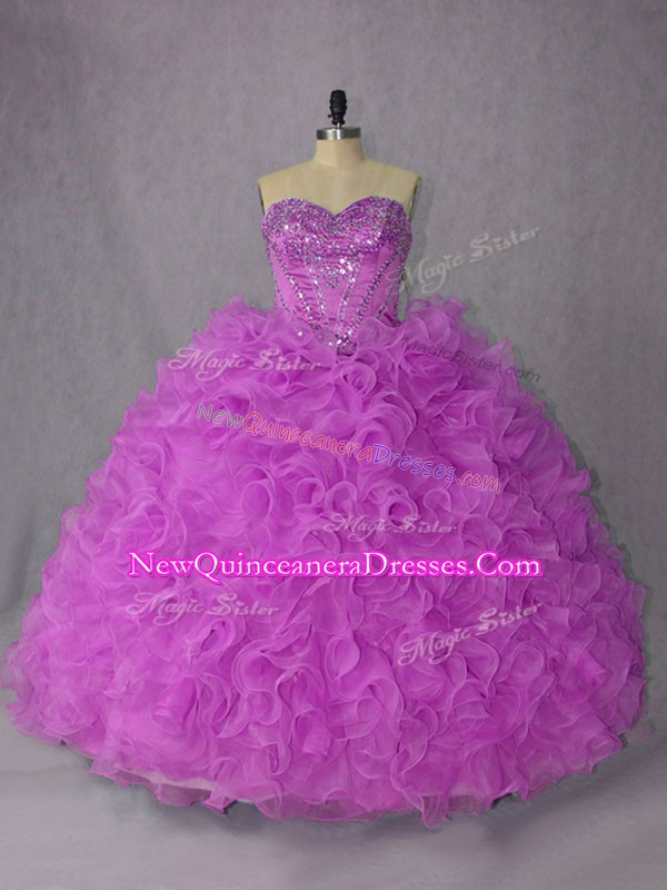 Best Organza Sweetheart Sleeveless Lace Up Beading Quinceanera Gowns in Lilac