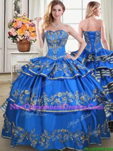 Best Three Piece Floor Length Lace Up Sweet 16 Dresses Blue and In for Military Ball and Sweet 16 and Quinceanera withBeading and Embroidery and Ruffled Layers