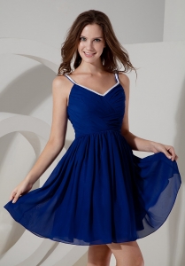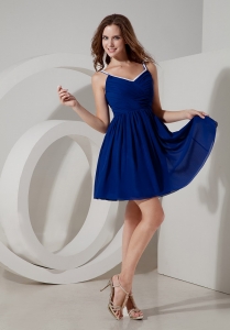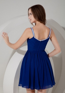 Blue A-line Spaghetti Straps Mini-length Chiffon Ruch Dama Dresses for Quinceanera