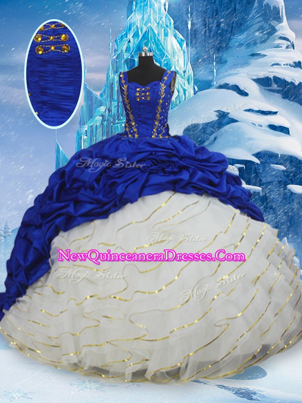 Ball Gowns Sleeveless Blue And White Quinceanera Gowns Brush Train Lace Up
