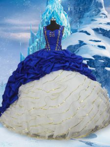 Blue And White Sleeveless Brush Train Ruffled Layers and Pick Ups Ball Gown Prom Dress