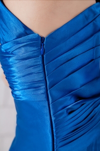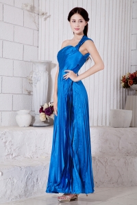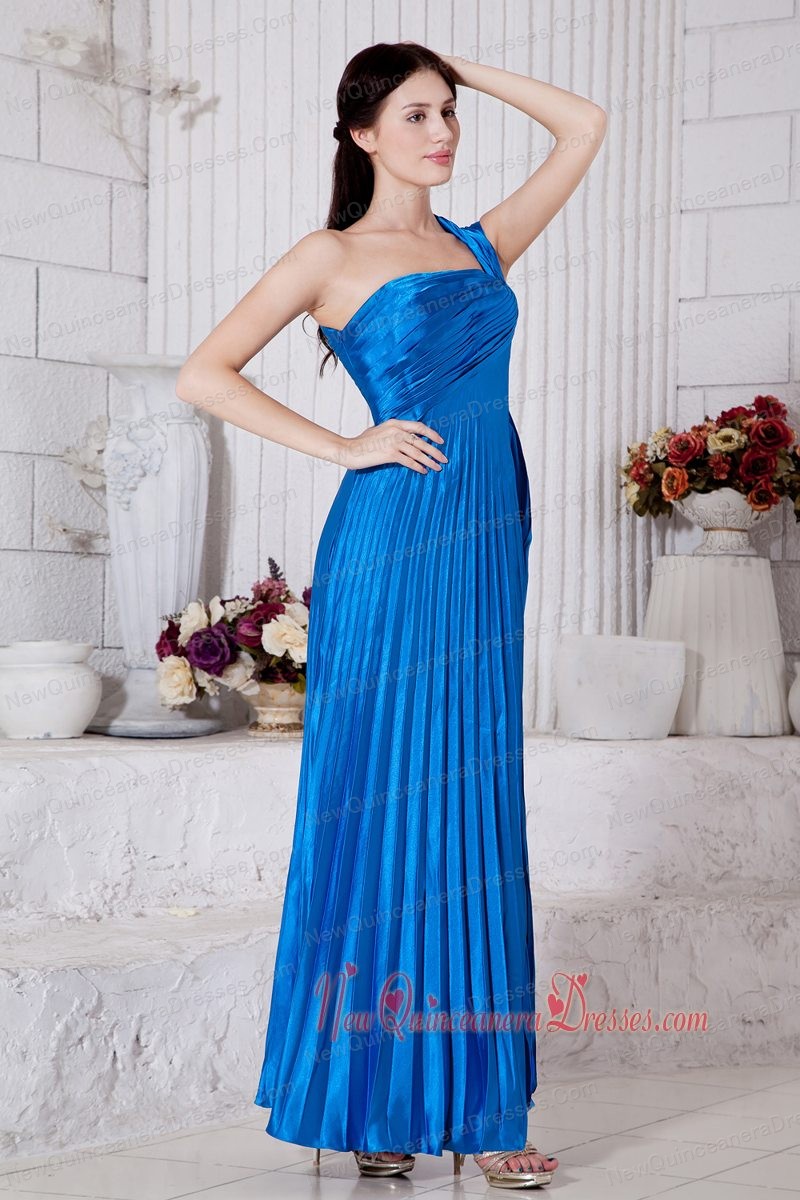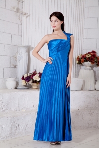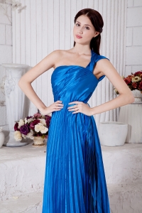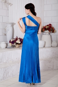 Blue Empire One Shoulder Ankle-length Taffeta Pleat Dama Dresses for Quinceanera