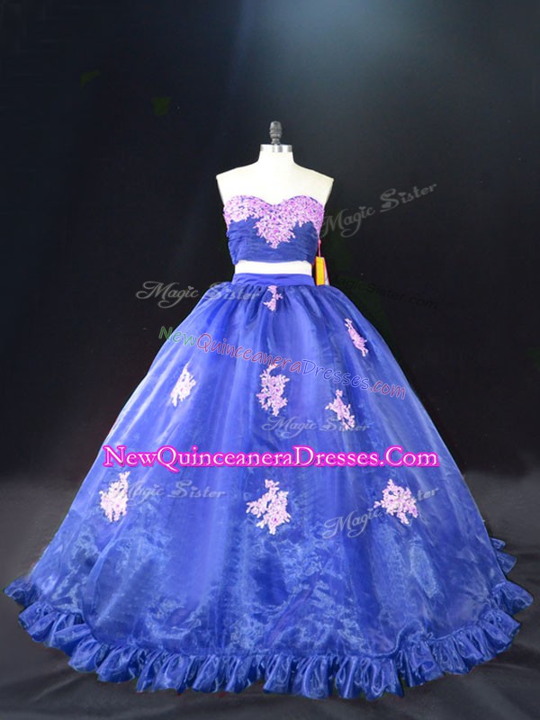 Blue Sleeveless Brush Train Appliques 15 Quinceanera Dress