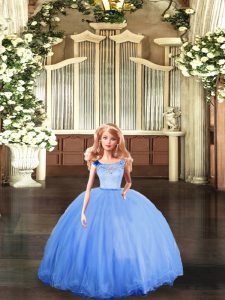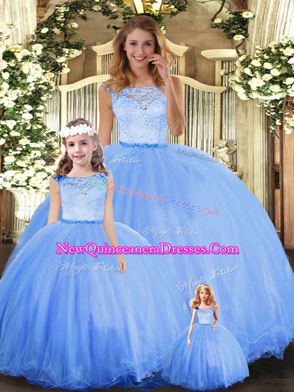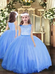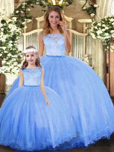 Blue Sleeveless Floor Length Lace Clasp Handle Quinceanera Dress